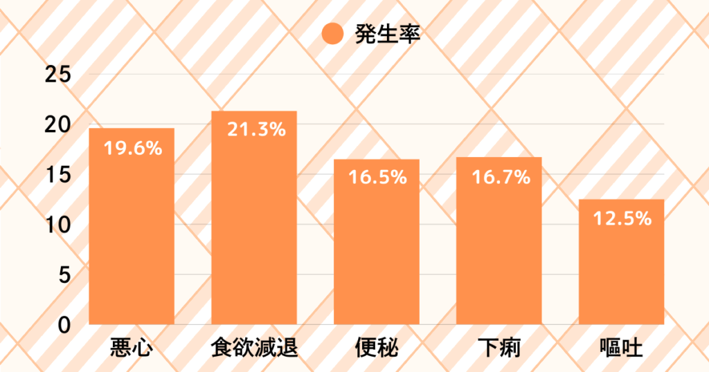 食欲抑制や胃排出遅延による消化器系副作用が起こりやすい
