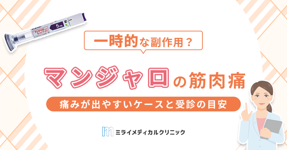 この記事では、マンジャロによる筋肉痛の実態から発生メカニズム、痛みが出やすいケース、具体的な対処法、受診の目安まで包括的に解説します。安心して治療を継続するための参考にしてください。