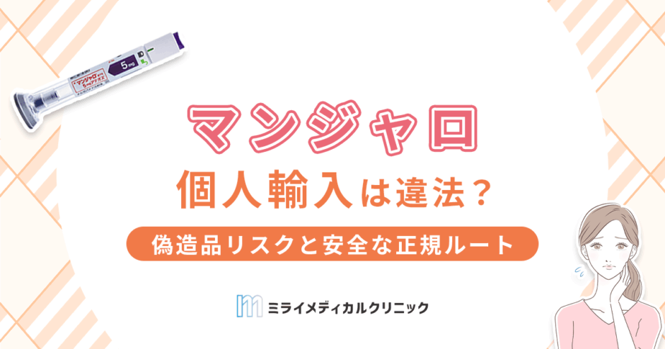 この記事では、マンジャロ個人輸入の実態から具体的なリスク、安全に入手するための正規ルートまで包括的に解説します。一時的な手軽さや価格の安さに惑わされず、安全で確実な治療を選択するための参考にしてください。