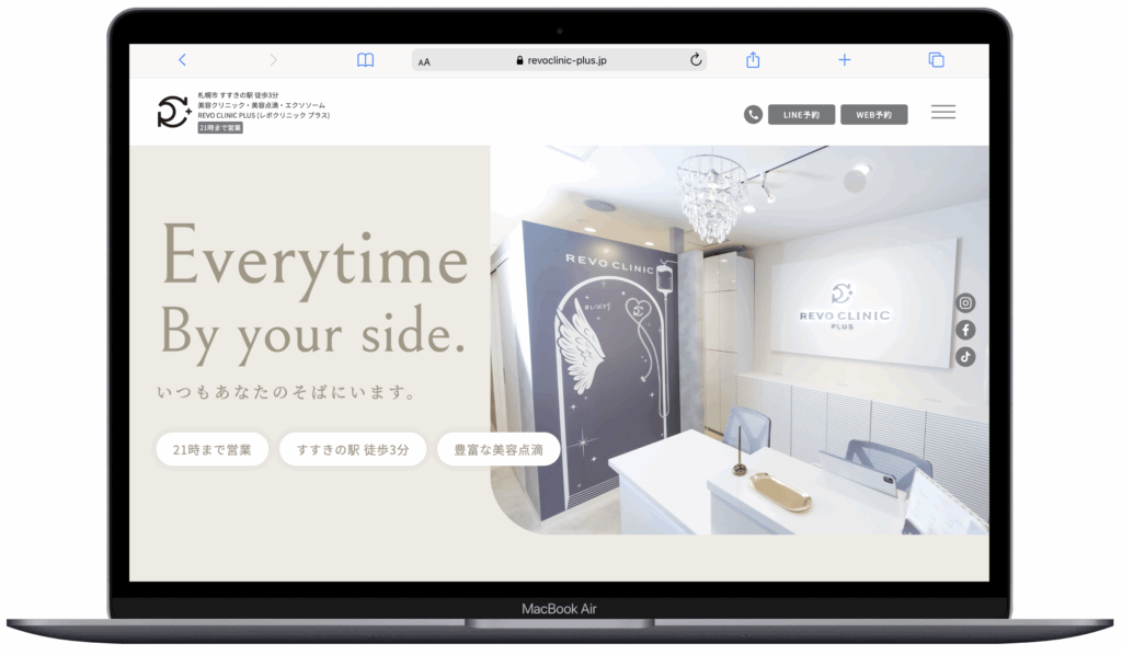 REVO CLINIC PLUS(レボクリニック プラス)は、札幌・すすきの駅から徒歩3分という好立地にあり、美容医療や内科診療に幅広く対応するクリニックです。マンジャロ(チルゼパチド)を用いた糖尿病や体重管理治療にも積極的に取り組み、患者一人ひとりの体質やライフスタイルに合わせた安全かつ効果的な処方・フォローアップを心がけています。