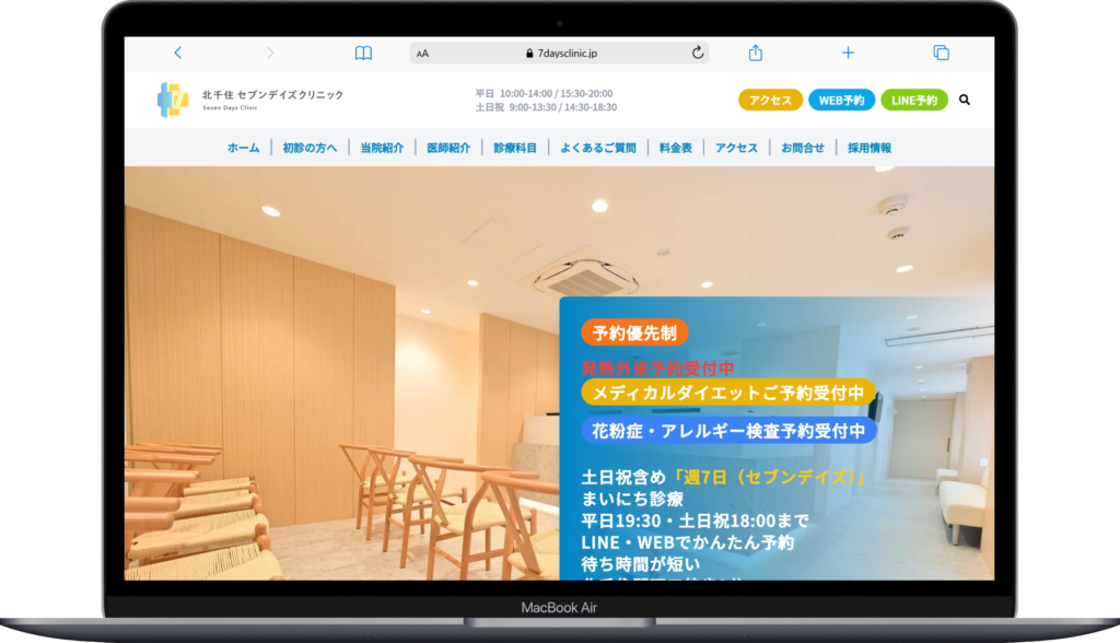 LINEやWEBから予約が可能で、スムーズに受診しやすい点も特徴です。通院のしやすさを重視したい方に向いています。